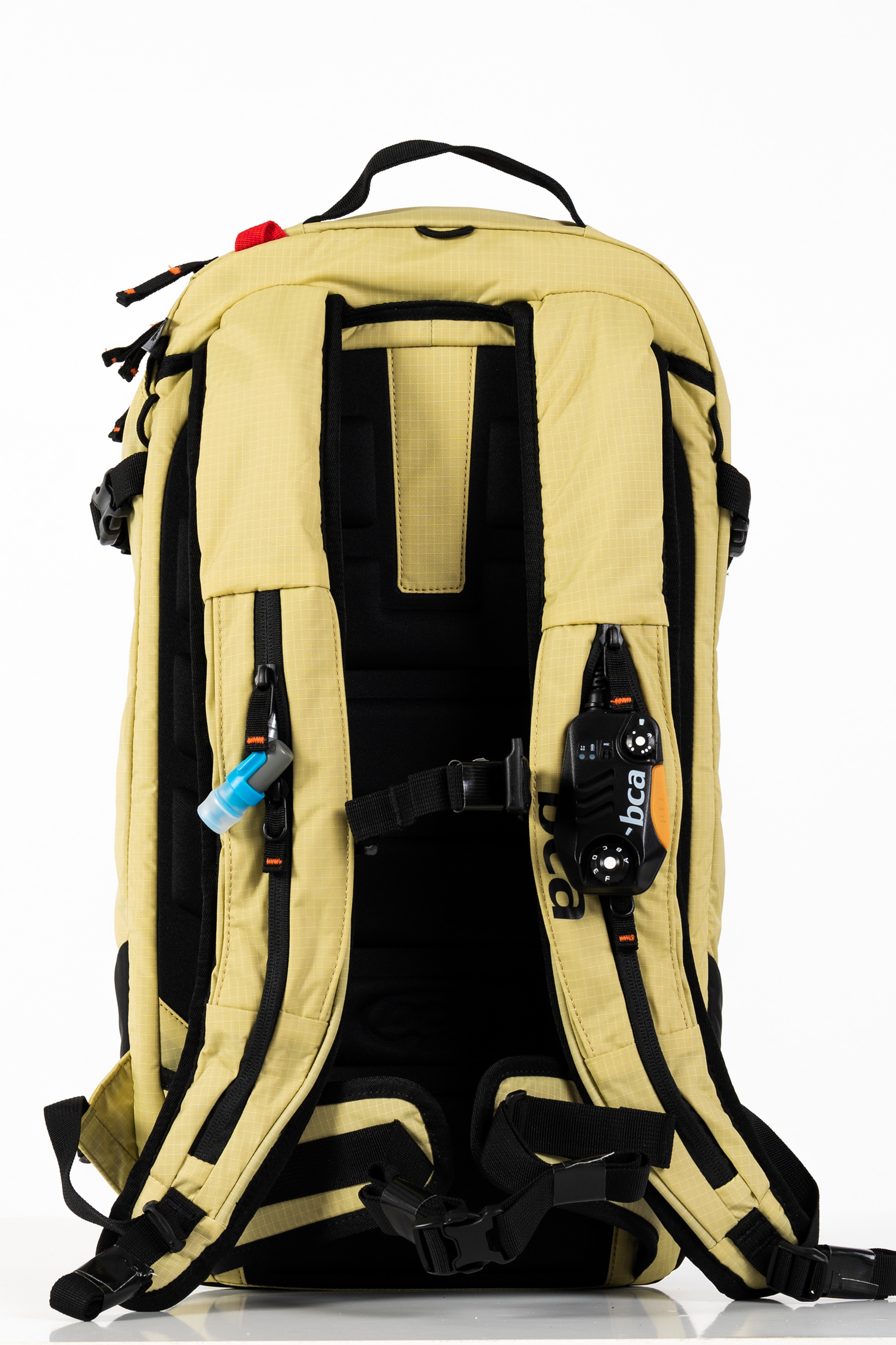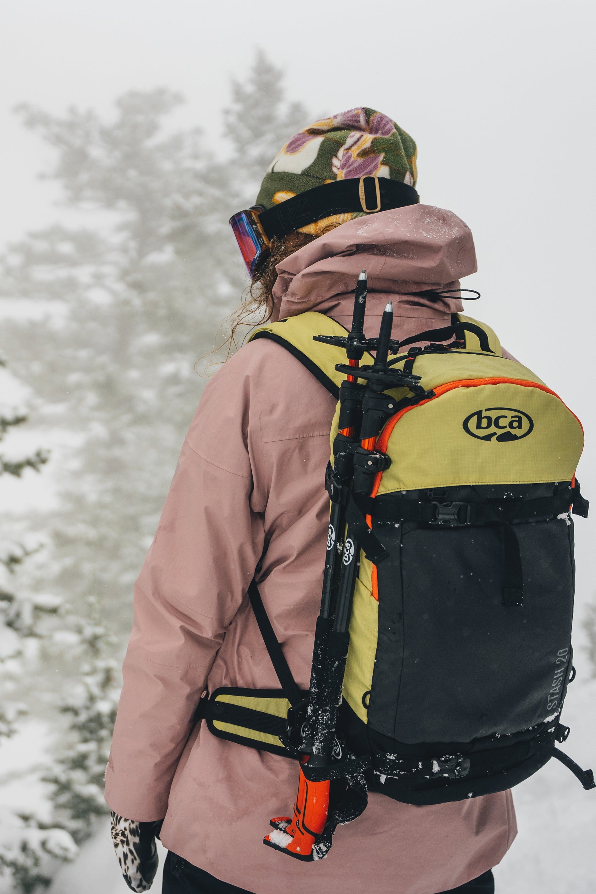 BCA Stash 20 Skiing Backpack. Whether it's a short day of touring, lift access to the backcountry, or a mellow day on the mountain’s resort, the Stash 20 skiing backpack performs with 20 litres of packable space and all the features and carry options you need in a comfortable and low profile pack option, yet it can still fit all the gear for avalanche terrain. The Backcountry Access Stash 20 backpack comes with a freezeproof stash hydration sleeve, a “mudroom” in front for the BCA snow safety tools to reside in, and integration with the BC Link Radios.